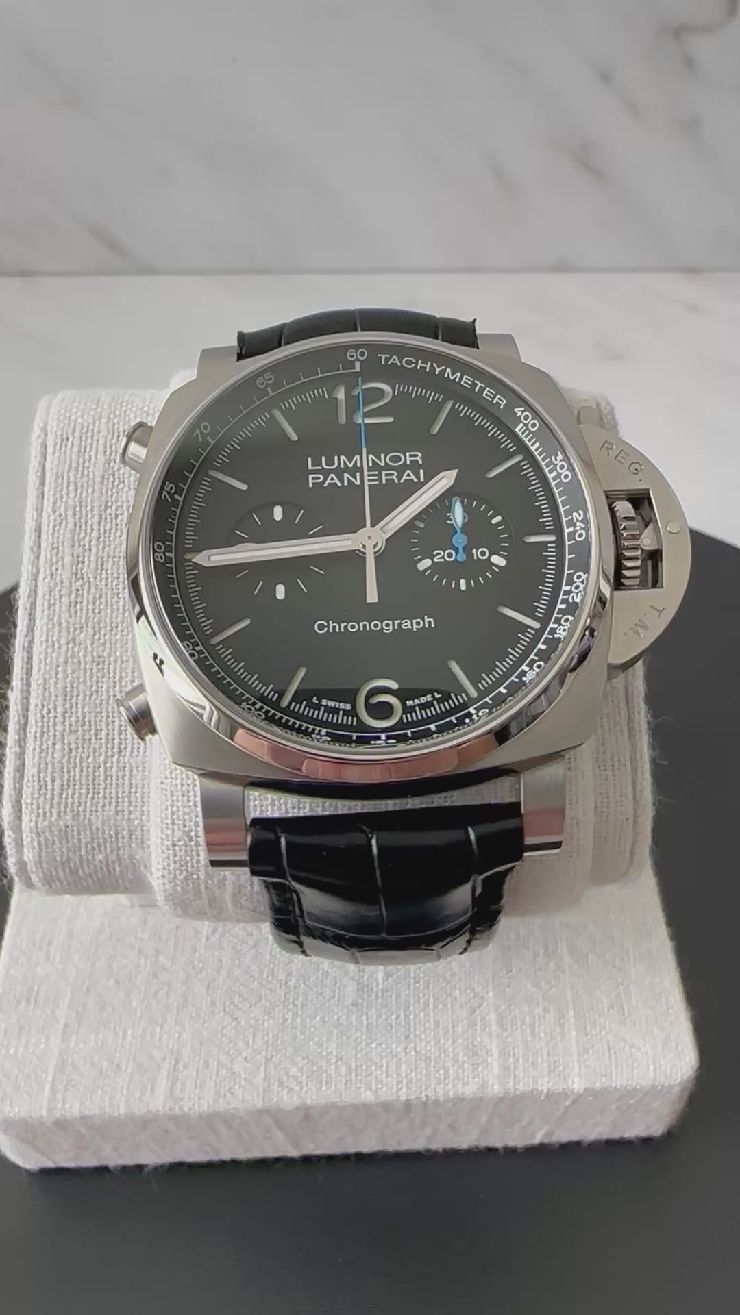 The Panerai Luminor Marina PAM01109 is a modern expression of one of Panerai’s most enduring designs. Its 44mm stainless steel case, complete with the iconic crown-protecting bridge, delivers both strength and unmistakable Panerai presence. The clean black dial features luminous Arabic numerals, hour markers, and a small seconds sub-dial at 9 o’clock—ensuring excellent legibility day or night.